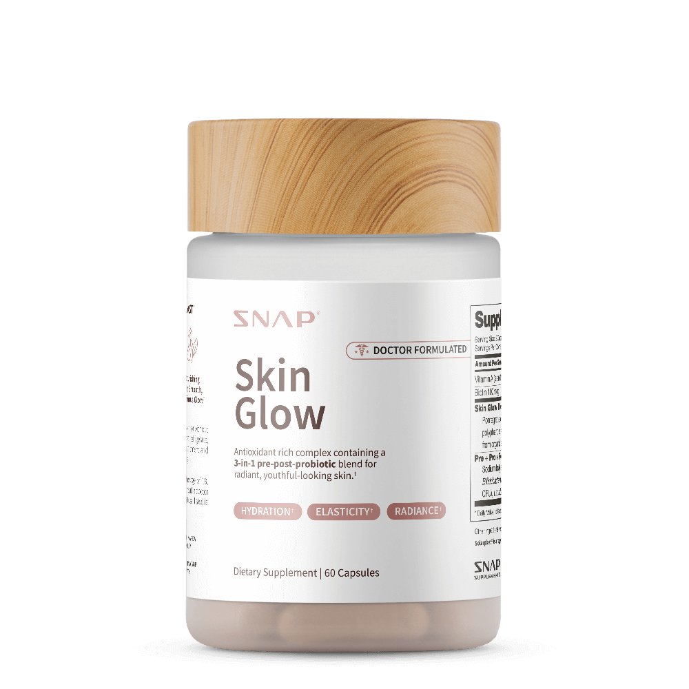 Skin Glow is a botanical blend with advanced biotics for luminous, hydrated, and youthful-looking skin. It enhances skin clarity and tone, promoting a healthy gut-skin axis.